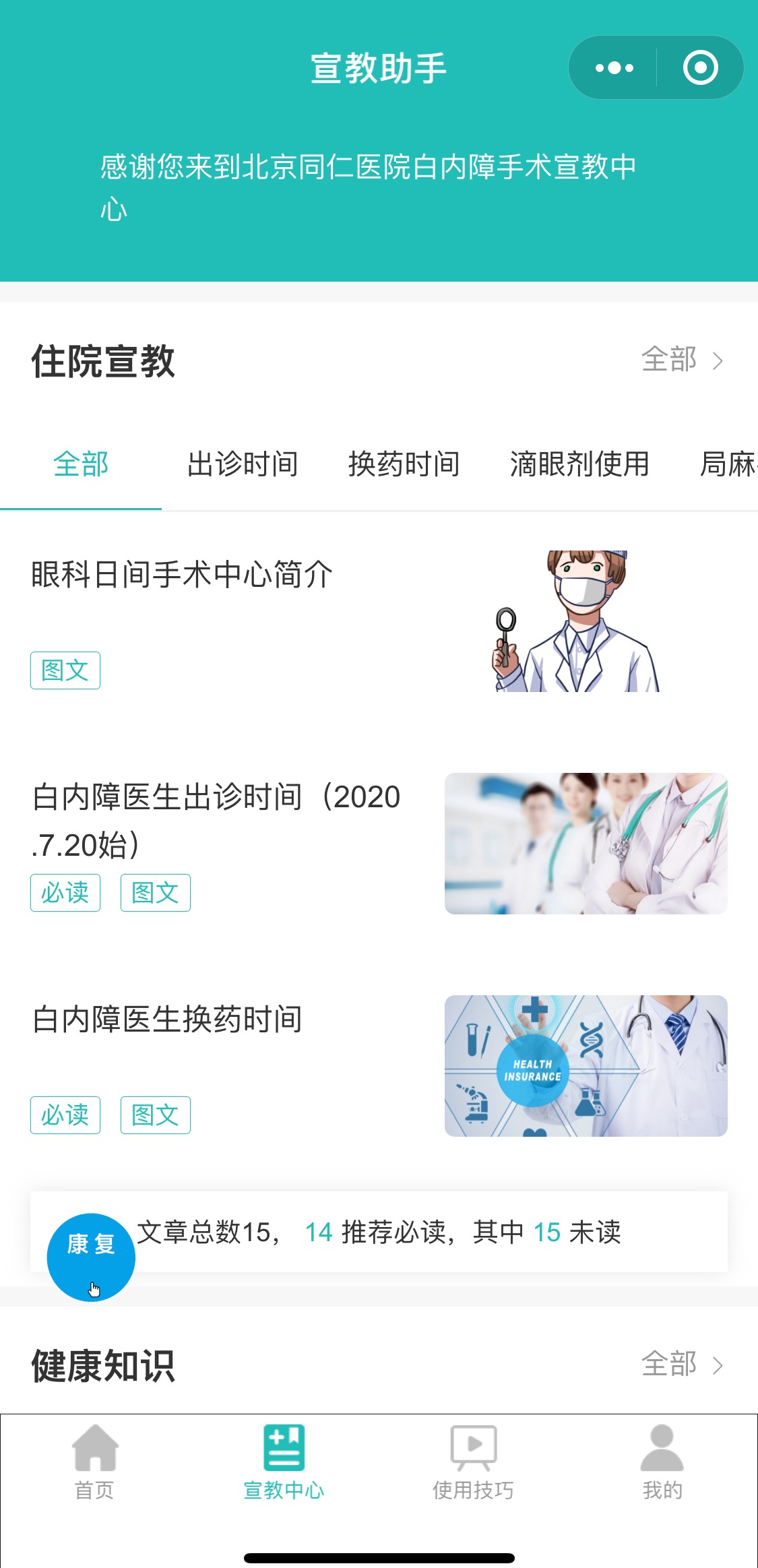 为解决白内障日间手术患者在医院停留时间短、围术期自我配合能力低的问题,北京同仁医院白内障中心党支部联合白内障门诊、日间病房、白内障手术室共同搭建“移动网络宣教助手”平台,通过易操作的微信小程序为患者随时随地提供全流程全方位的护理服务信息。